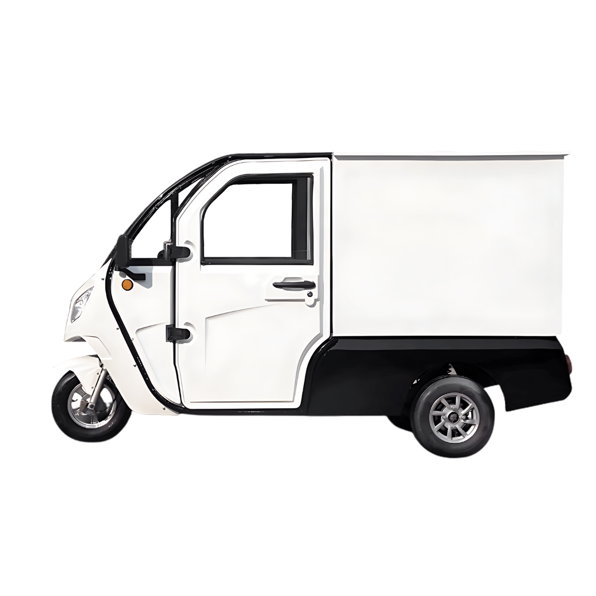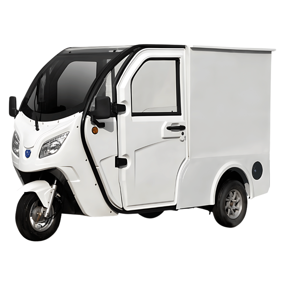 Der Jonway HSL Cargo ist ein robustes, vollelektrisches Lastendreirad mit geschlossener Transportbox, erhältlich in den Varianten 25 km/h (führerscheinfrei) und 45 km/h.