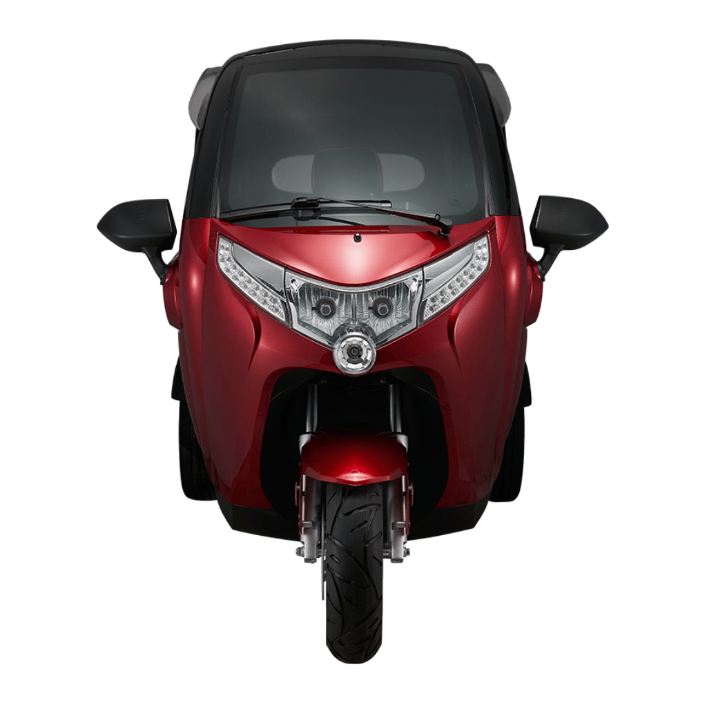 Alltagstauglicher 3-Rad-Kabinenroller mit wahlweise 25 km/h (fahrerlaubnisfrei für Geburtsjahrgänge vor 01.04.1965, bzw. ab 15 J. mit Mofa-Prüfbescheinigung) oder 45 km/h (Klasse AM/B). Robuste Blei-Gel-Technik, niedrige Betriebskosten, geschützte Kabine.